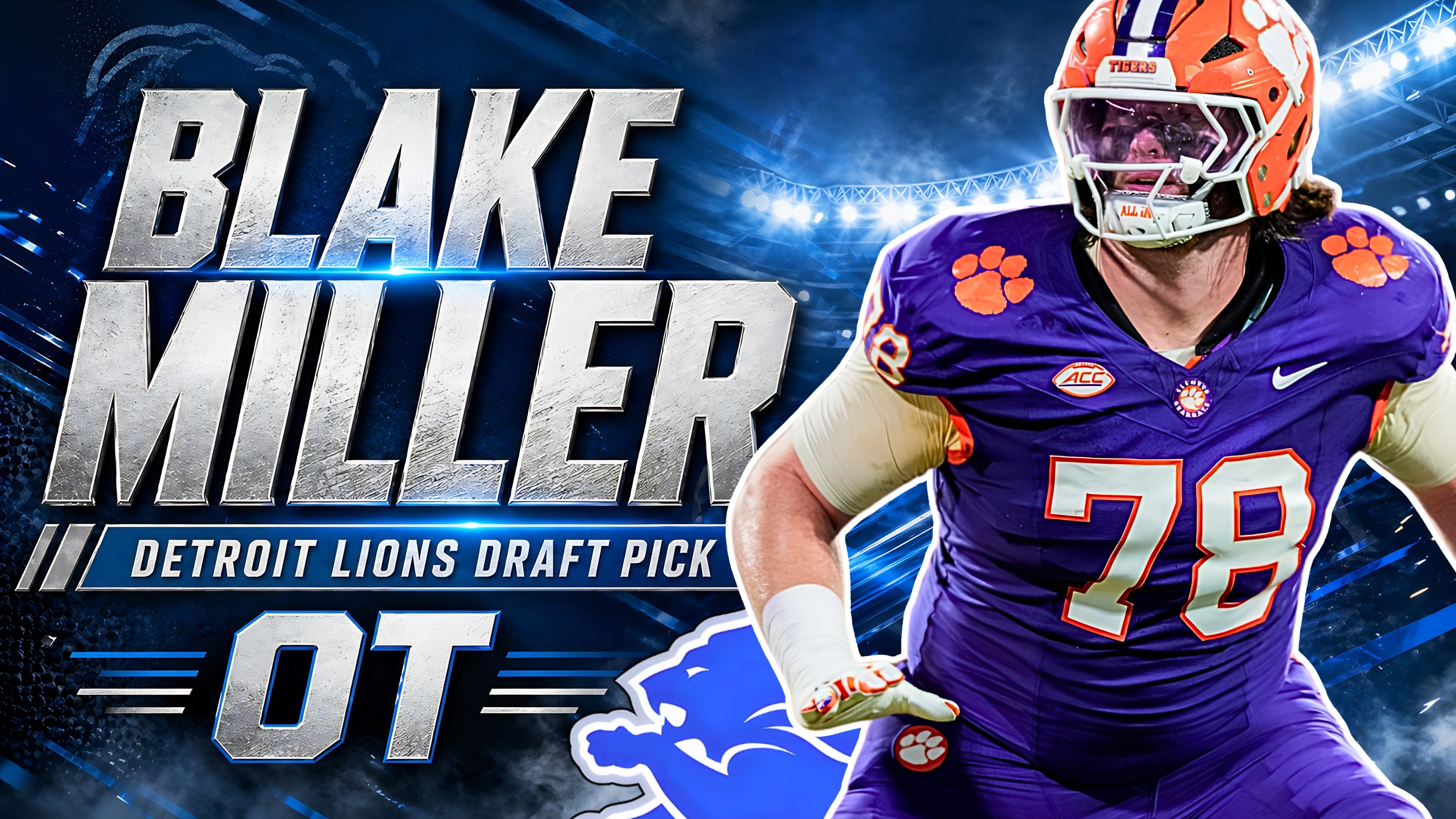 Miller fits Detroit because his best football lives inside the Lions’ offensive identity: gap runs, duo, inside zone, play-action protection, and heavy personnel looks that demand tackles who can strain, cover up bodies, and finish. Clemson trusted him to live at right tackle, and Detroit values that same kind of stability. The cultural fit is just as clean. Miller’s college profile is built on durability, leadership, and week-after-week dependability. That matches a Lions room that wants offensive linemen who can function without drama, protect Jared Goff’s timing, and keep the run game physical. He is not a luxury pick. He is a roster-structure pick.