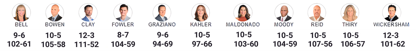 Will Rock Week 11 | 12-3 | Overall 107-56 | Tied 2nd Place