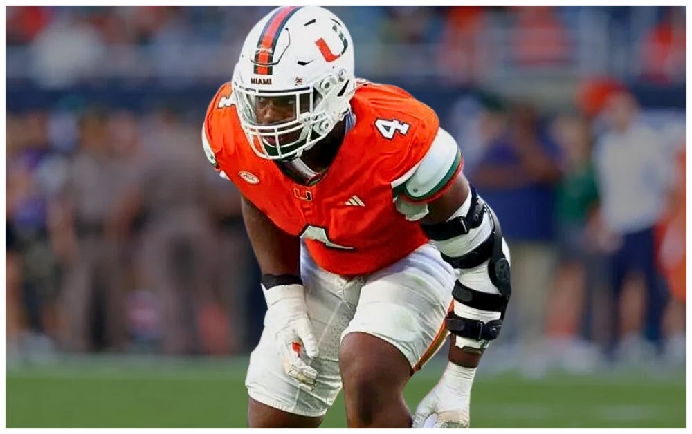 Rueben Bain Jr. arrived in Indianapolis as a consensus top-five lock, after delivering an absolute masterclass on his 2025 tape. Racking up nine and a half sacks, and a lethal 23.5% pass-rush win rate, Bain operated with pure violence and a relentless motor to routinely collapse the pocket. He attacks the line of scrimmage with an aggressive, low-center-of-gravity approach, establishing himself as one of the most statistically productive, dominant and highly-evaluated collegiate edge defenders in the country against both the run and the pass. But then he opted out of the agility portion of the NFL Combine—leaving as the NFL Draft’s most polarizing riddles.